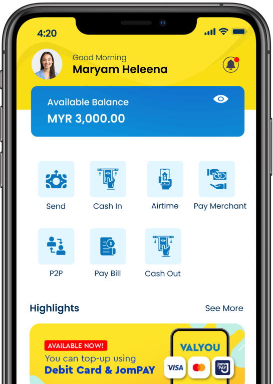 Our mobile wallet app also features convenient peer-to-peer transfers, prepaid top-ups, bill payments, and more. Experience the power of Valyou today!